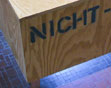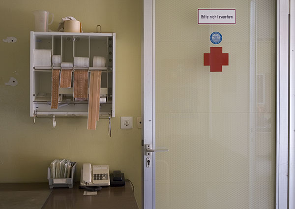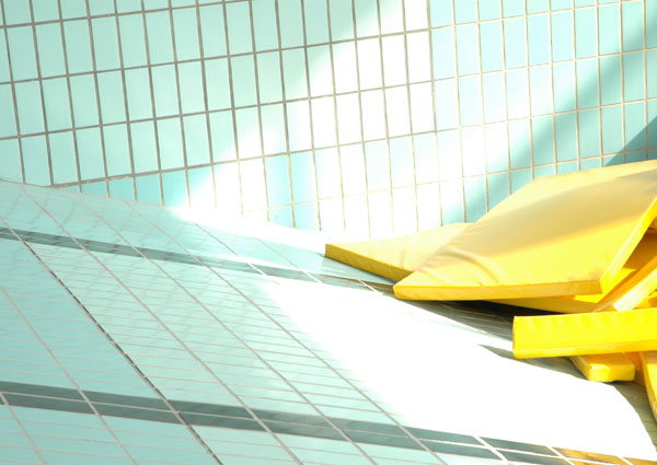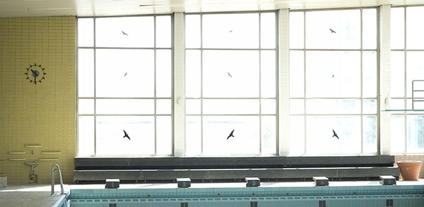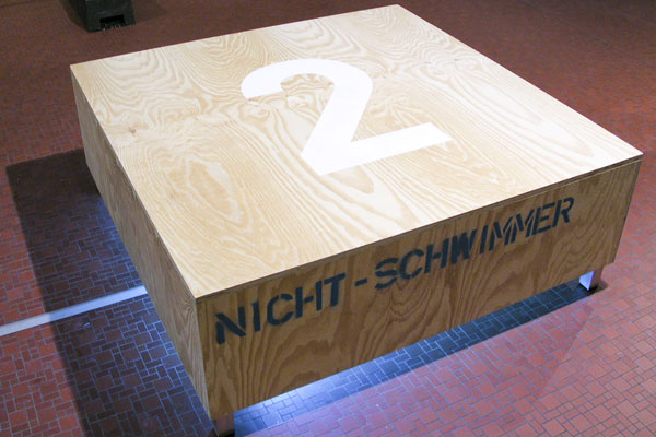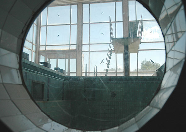 Bildthemen sind Übersichten des Hallenbades und Fotos von vertrauten Details. Ehemalige Angestellte und Besucher ergänzen die Arbeit in Portraits und in Worten.